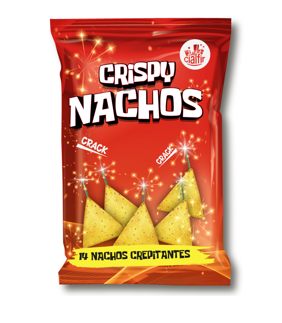 Nachos cracker, pequeño trueno craqueante, artificio pirotécnico compuesto de pastilla de composición pirotécnica recubierta de protector, pequeño tubo de papel, envuelto con un triángulo de papel y equipado con una mecha que sobresale.